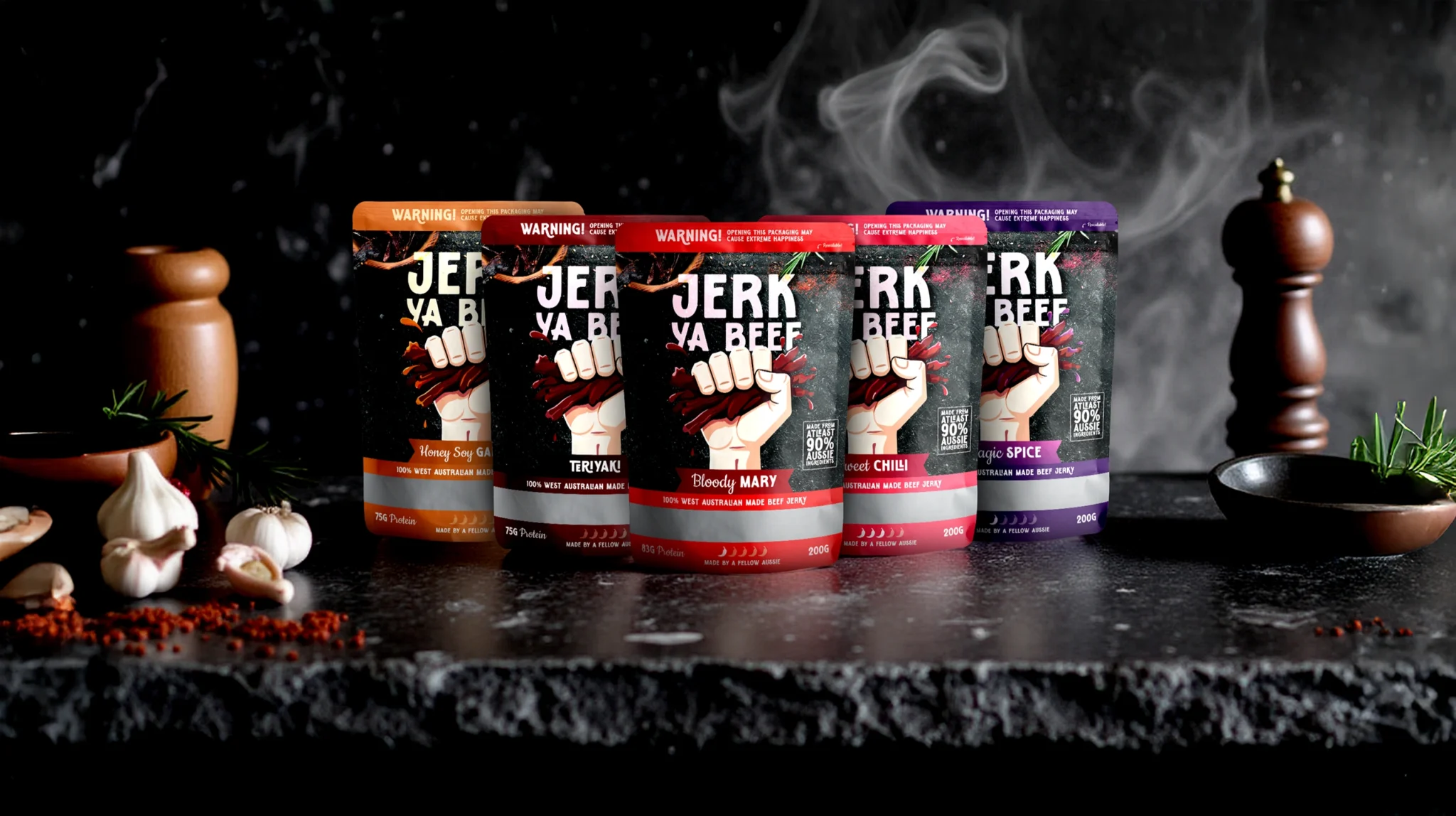 Jerk Ya Beef offers a wide range of bold flavours, from Teriyaki to Sweet Chilli to the elusive Magic Spice, each recipe is crafted to bring out the best in premium Australian beef.